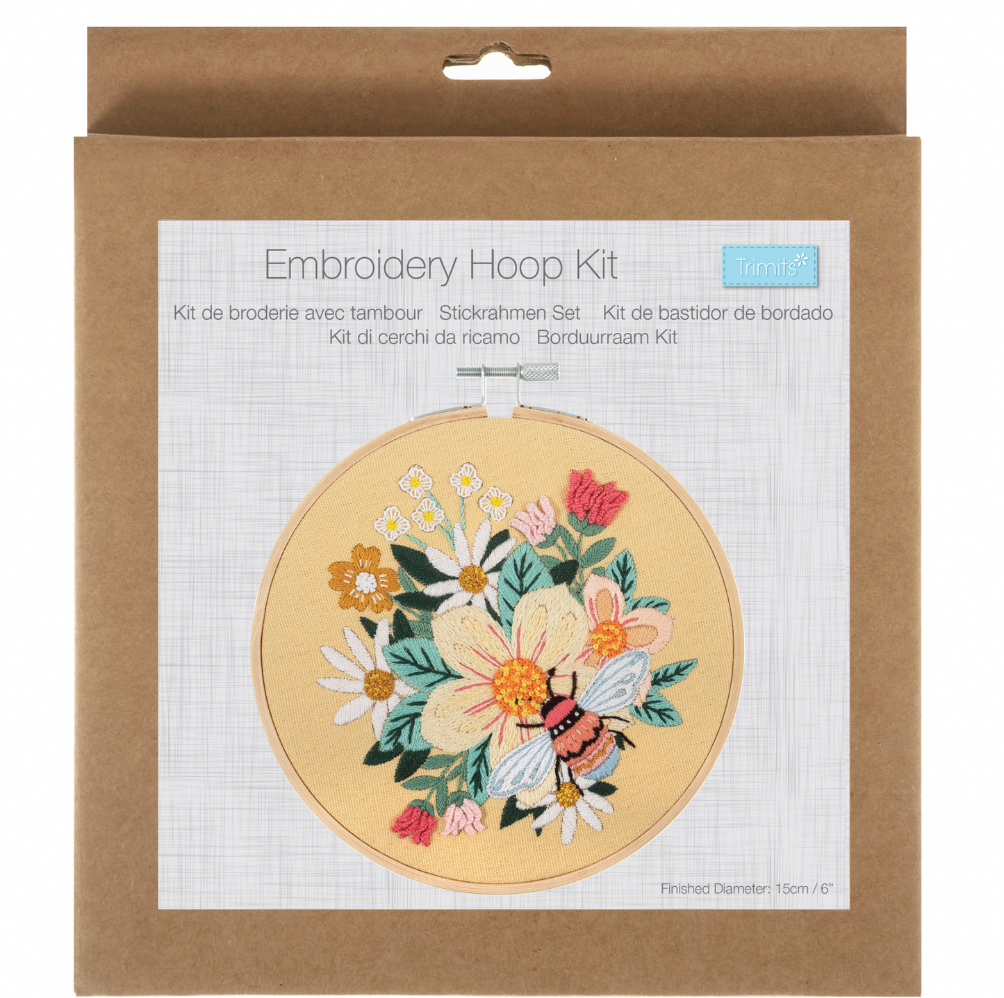 A buzzy bee themed embroidery kit with hoop from Trimits.