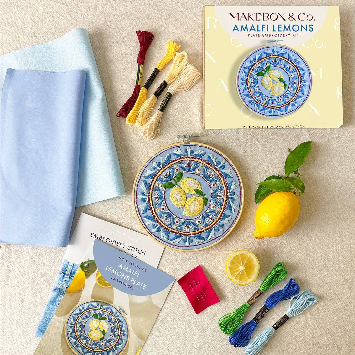 Craving a little slice of Italian sunshine? Then meet the Amalfi Lemons Plate, an exquisite 7-inch embroidery kit from MakeBox & Co!