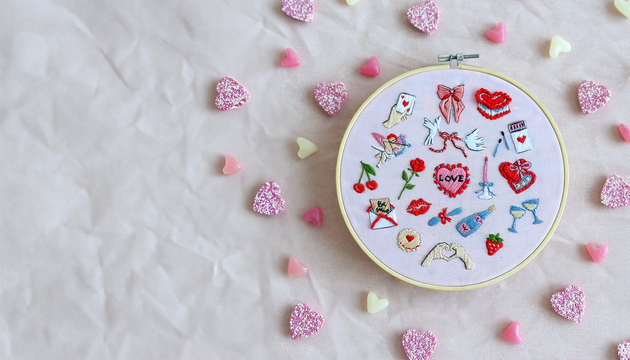 Craft a romantic 8-inch embroidery sampler that captures the essence of love. Inspired by antique love tokens, this piece is more than just a craft—it is a future heirloom. It makes a truly personal gift for Valentine’s Day, anniversaries, or weddings.